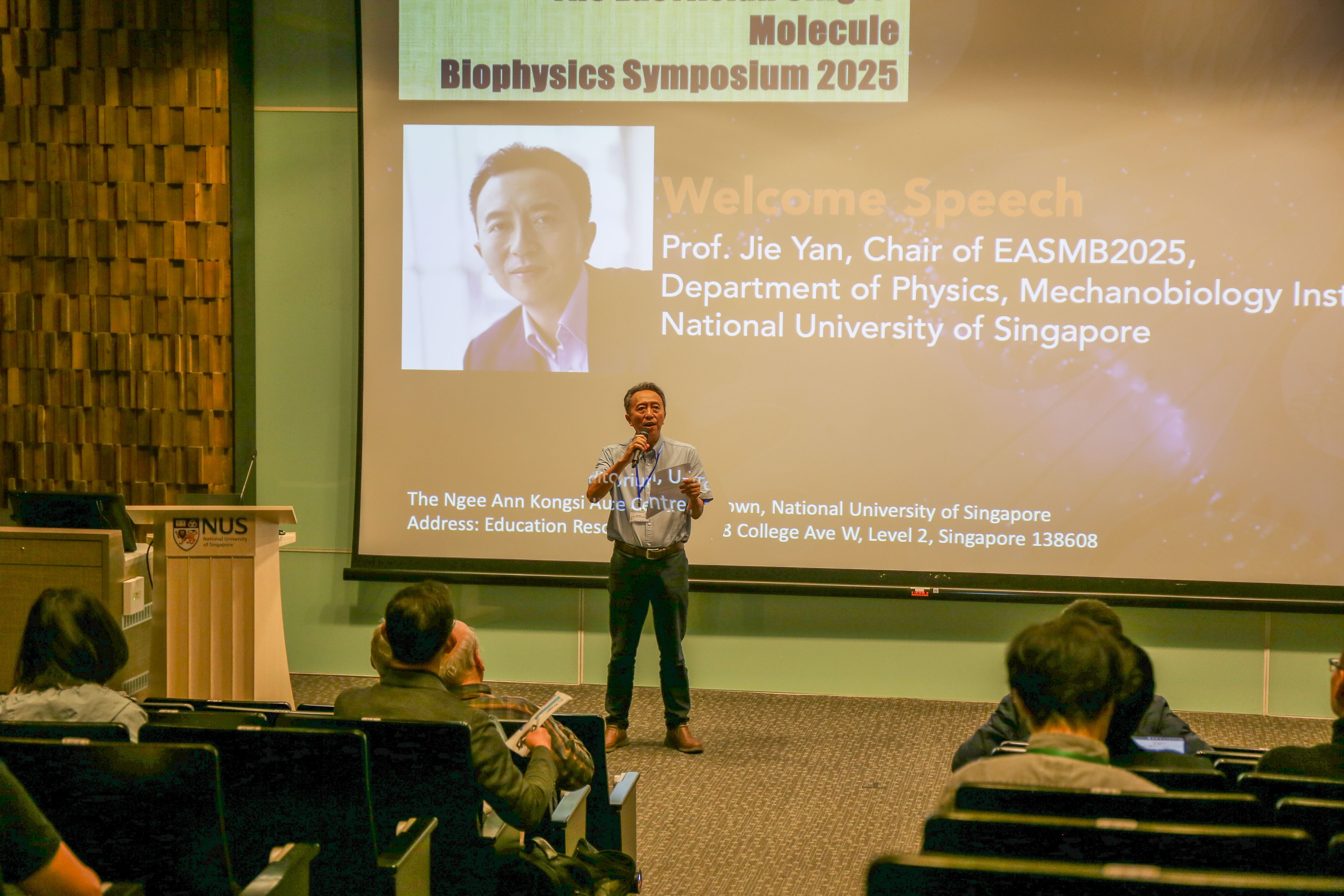 The East Asian Single-Molecule Biophysics Symposium 2025 (EASMB2025) was held from 24 to 26 November at the Ngee Ann Kongsi Auditorium in the Education Resource Centre, UTown, National University of Singapore. Chaired by Jie Yan, MBI and jointly organized with various institutions across South Korea, China, and Japan, the symposium showcased cutting-edge advances in single‑molecule biophysics across technology development, nucleic acids, mechanosensing, molecular motors, and biomolecular organization.